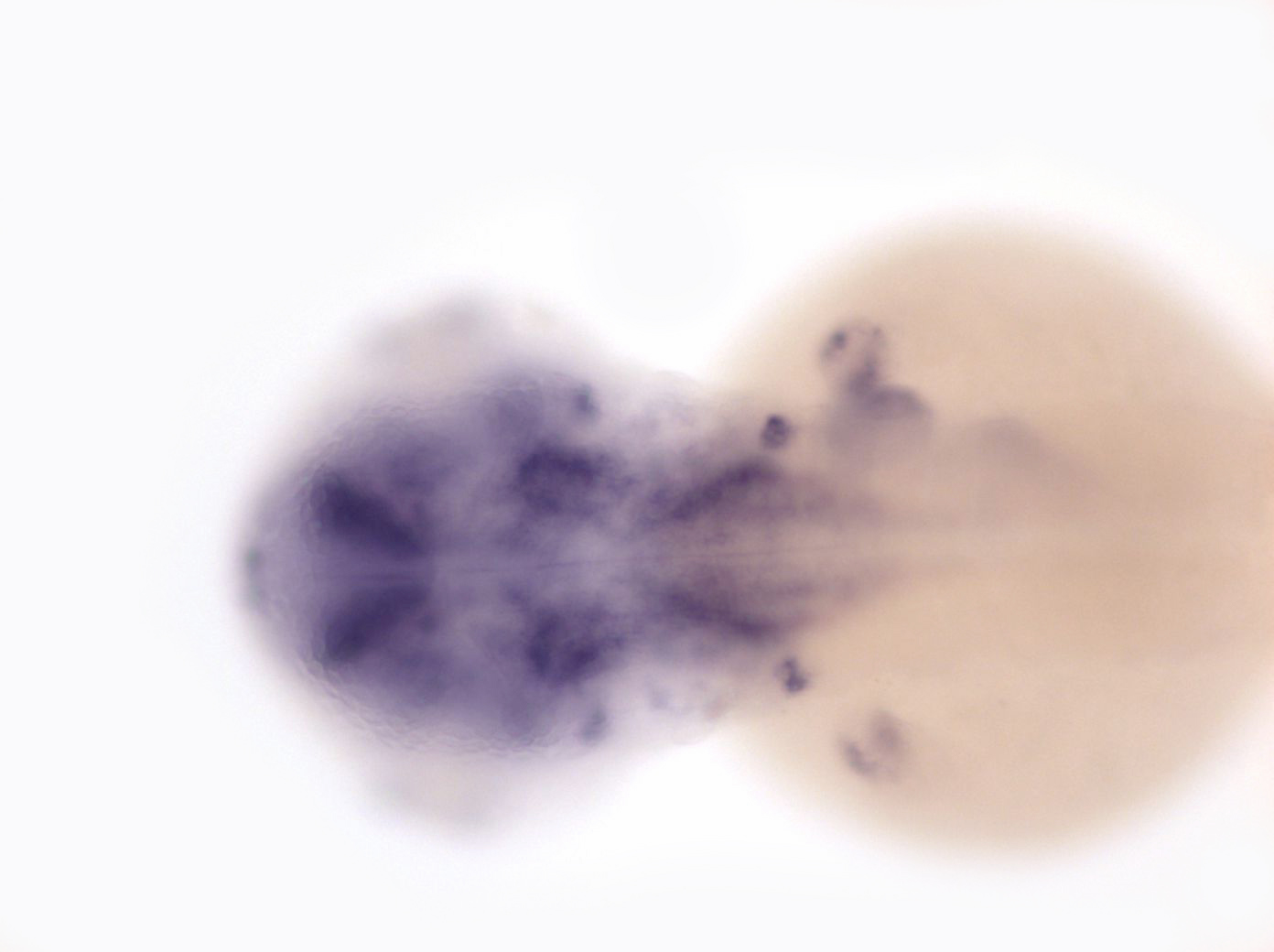 Fig. 5 Expression in epiphysis, forebrain, tegmentum, hindbrain, cranial ganglia,retina inner cell layer, liver primordium and pectoral fin