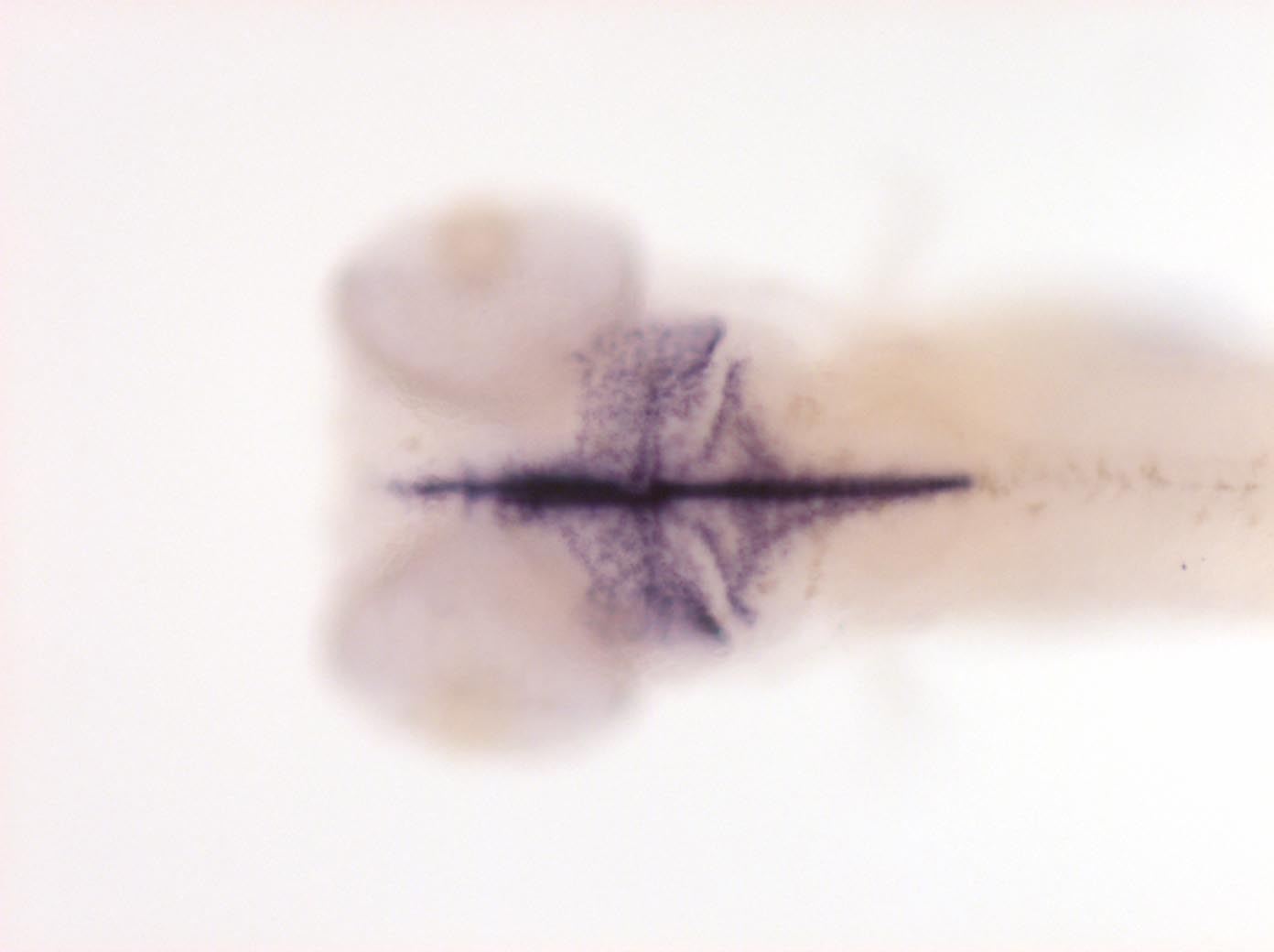 Please note that in 5 day old embryos some structures are not accessible to the probe (such as notochord, most of the trunk and tail). Therefore the description of the expression pattern is only partial.