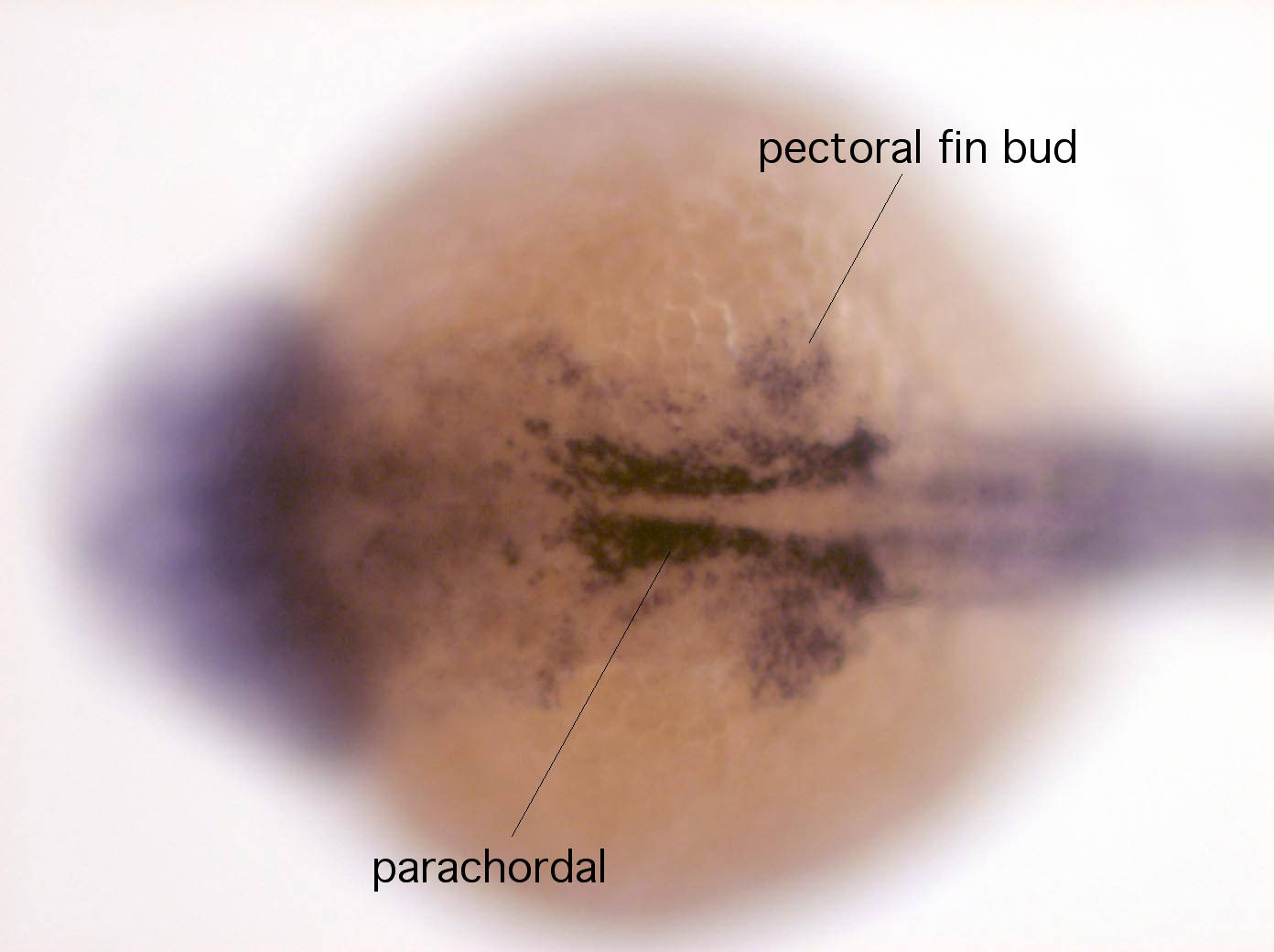 Fig. 4 Expressed in cephalic posterior paraxial mesoderm (parachordal), ventral part of somites, caudal somites,caudal medial fin fold, chordo-neural hinge