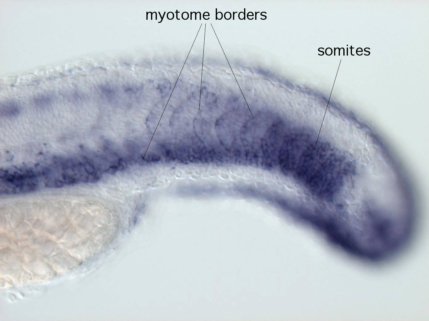Fig. 4 Expressed in cephalic posterior paraxial mesoderm (parachordal), ventral part of somites, caudal somites,caudal medial fin fold, chordo-neural hinge