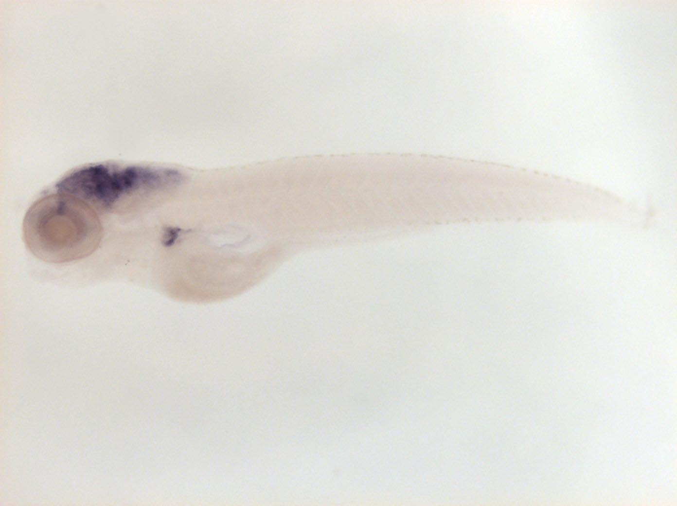 Please note that in 5 day old embryos some structures are not accessible to the probe (such as notochord, most of the trunk and tail). Therefore the description of the expression pattern is only partial.