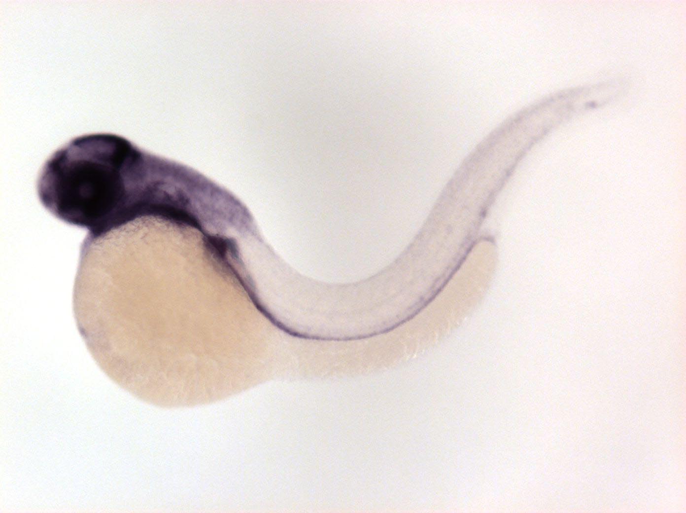 Fig. 5 More labelling in retina, tectum, pharyngeal arches 3-7, pectoral fin bud and gut