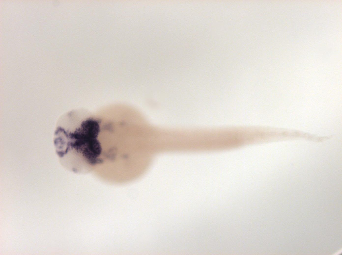 Fig. 6 nose, dorsal telencephalon, hypothalamus, otic vesicle, pretectum, mesoderm near pectoral fin, branchial arches, tectum, choroid fissure