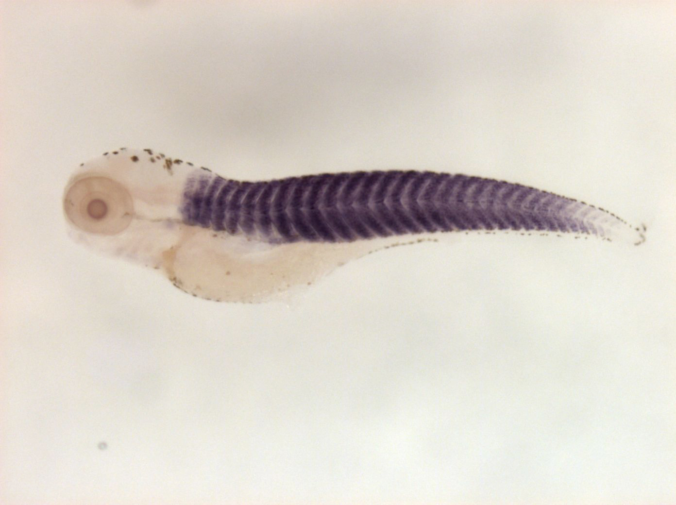 Please note that in 5 day old embryos some structures are not accessible to the probe (such as notochord, most of the trunk and tail). Therefore the description of the expression pattern is only partial.