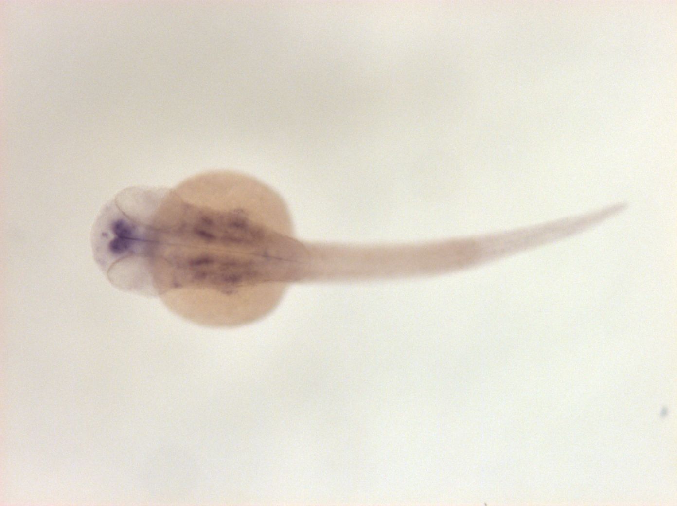 Fig. 5 weak in forebrain, strong midbrain/diencephalon border, branchial arches, longitudinal stripe in hindbrain