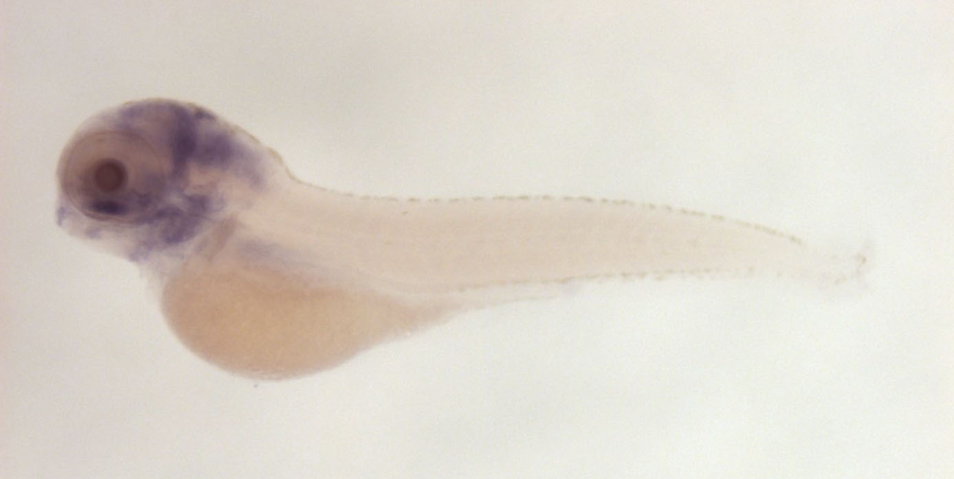 Please note that in 5 day old embryos some structures are not accessible to the probe (such as notochord, most of the trunk and tail). Therefore the description of the expression pattern is only partial.
