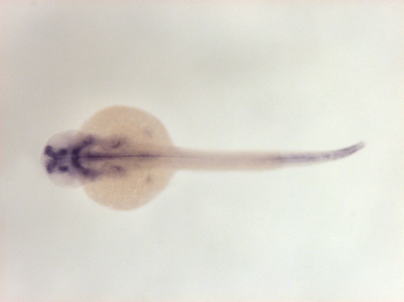 Fig. 5 optic stalks, CNS ventricular zone, posterior somites, anterior telencephalon, otic vesicle, branchial arches