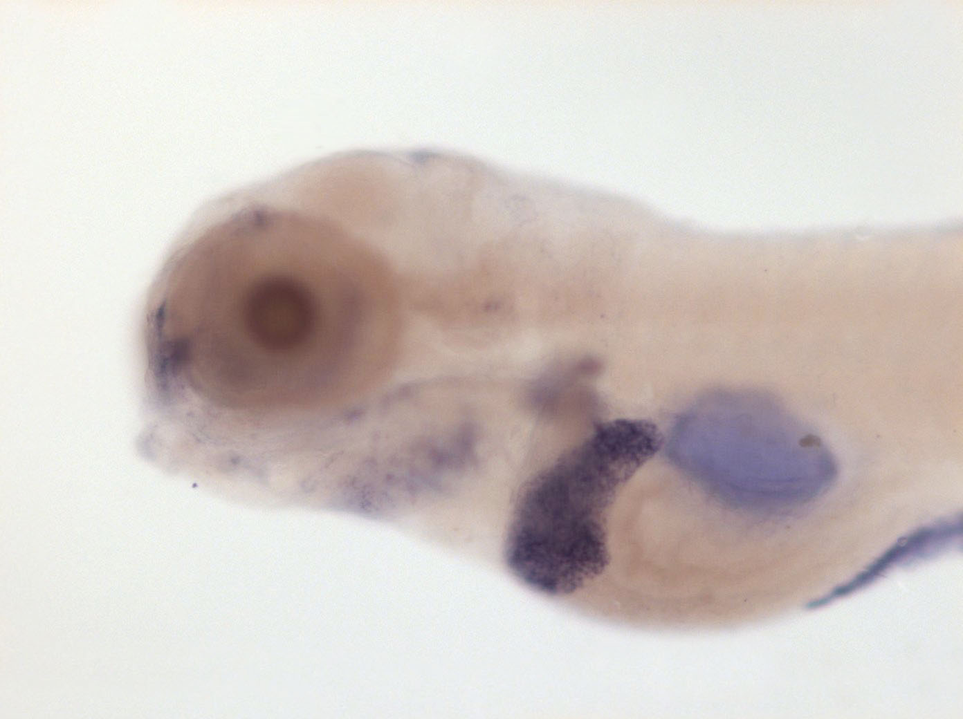Please note that in 5 day old embryos some structures are not accessible to the probe (such as notochord, most of the trunk and tail). Therefore the description of the expression pattern is only partial.