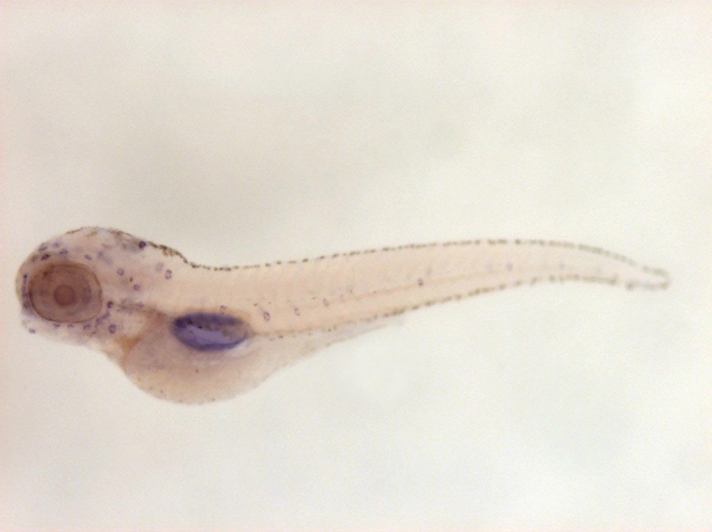 Please note that in 5 day old embryos some structures are not accessible to the probe (such as notochord, most of the trunk and tail). Therefore the description of the expression pattern is only partial.