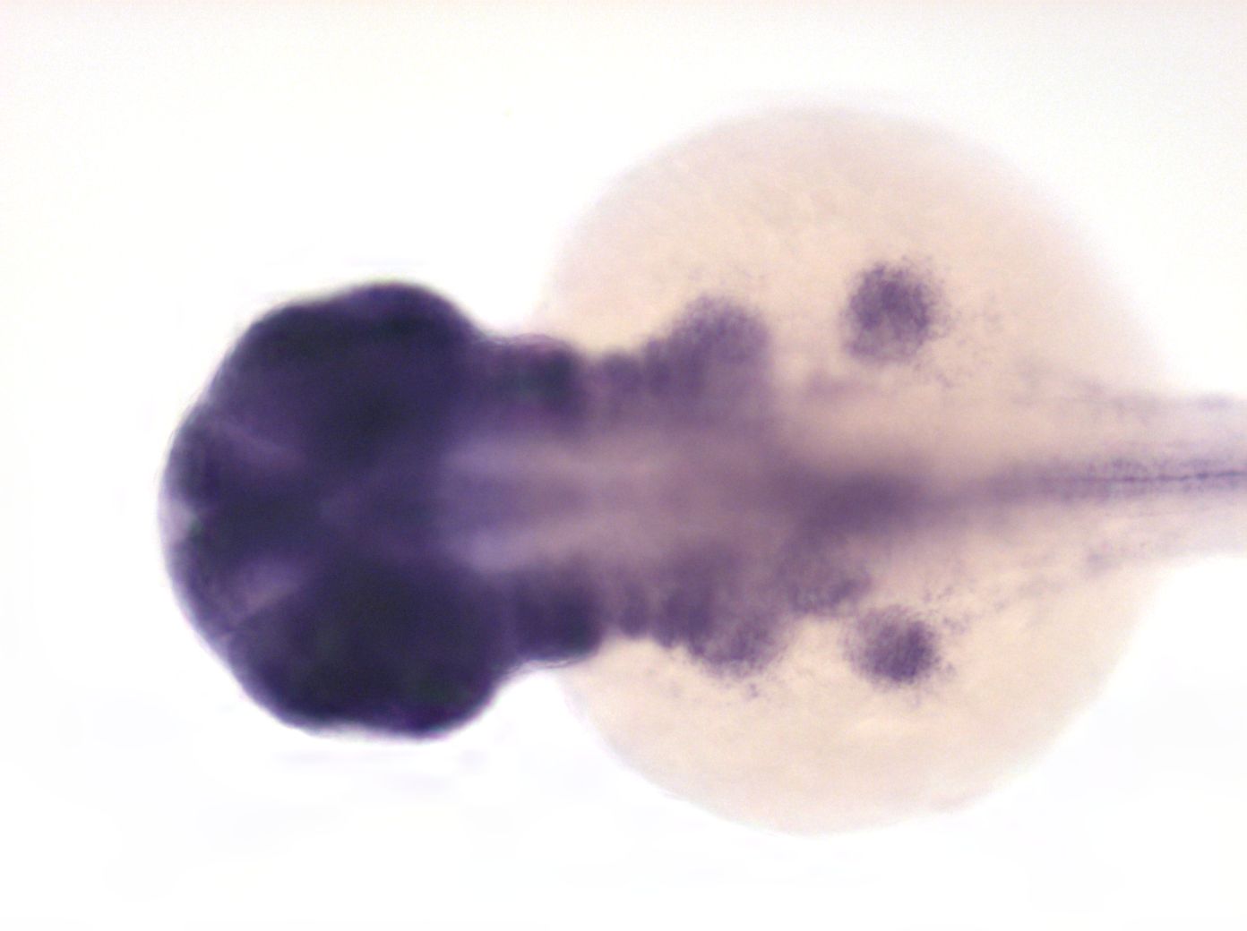 Fig. 5 Expressed in central nervous system (more in tectum and forebrain ventricular zone), eye, branchial arches, pectoral fin bud