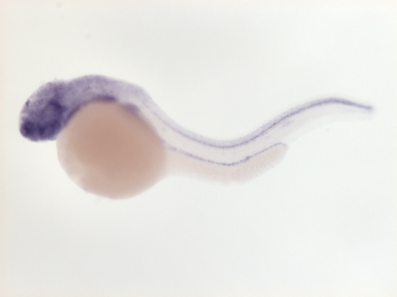 Fig. 5 More labelling in nose, part of forebrain and part of tegmentum, pronephric ducts and ventral part of the spinal chord