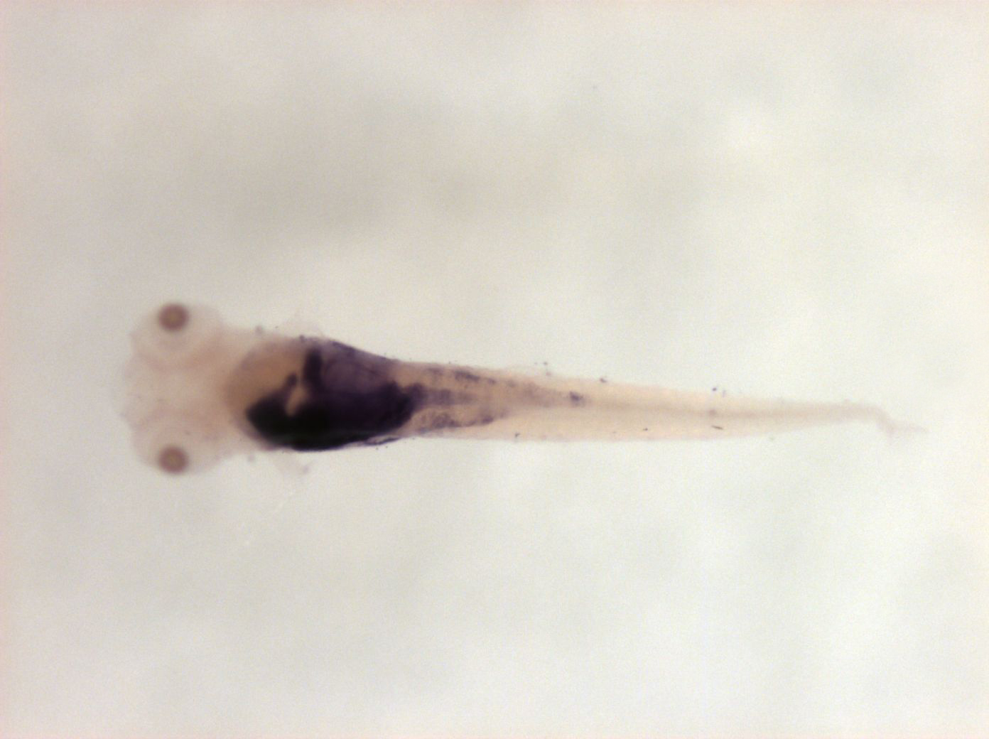 Please note that in 5 day old embryos some structures are not accessible to the probe (such as notochord, most of the trunk and tail). Therefore the description of the expression pattern is only partial.