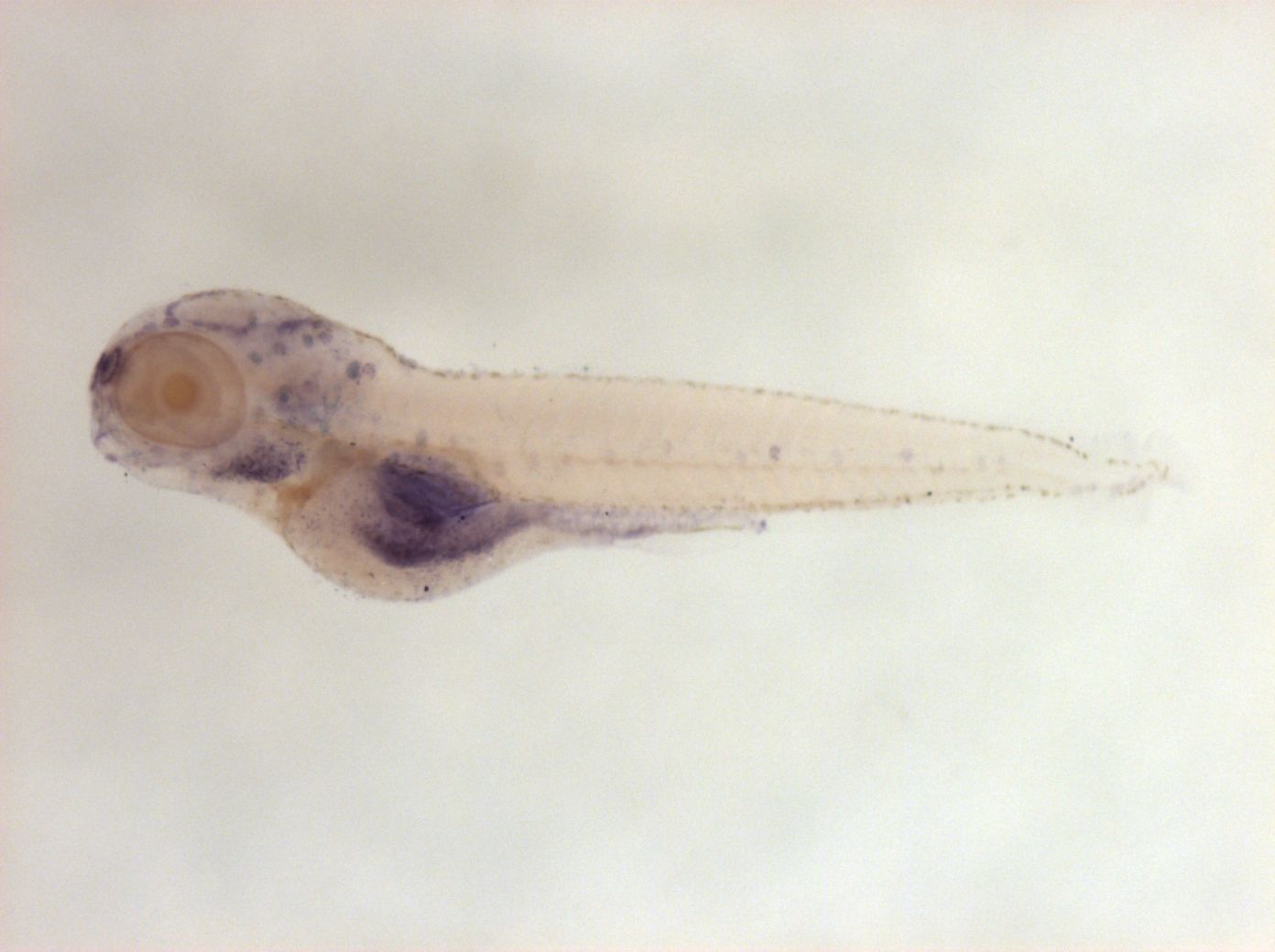 Please note that in 5 day old embryos some structures are not accessible to the probe (such as notochord, most of the trunk and tail). Therefore the description of the expression pattern is only partial.