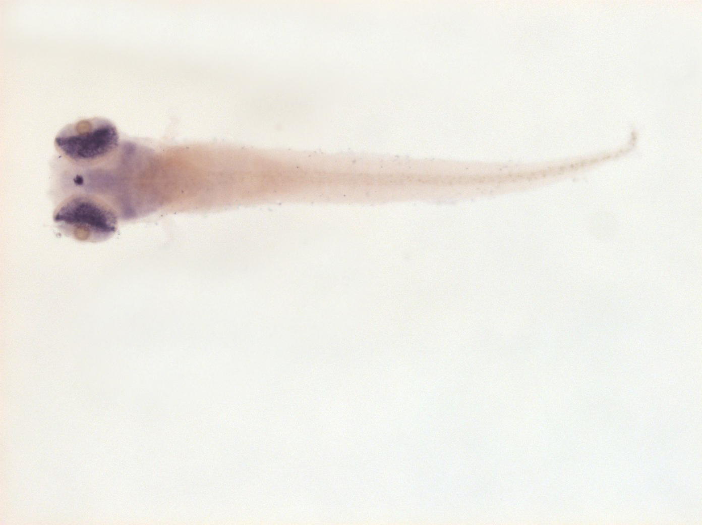 Please note that in 5 day old embryos some structures are not accessible to the probe (such as notochord, most of the trunk and tail). Therefore the description of the expression pattern is only partial.