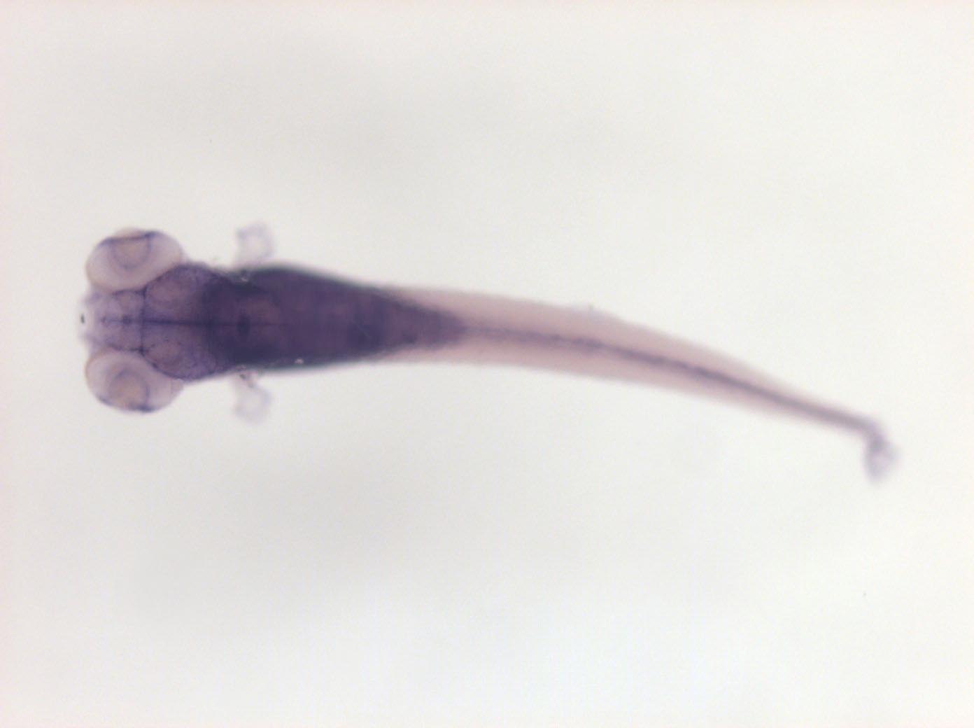 Please note that in 5 day old embryos some structures are not accessible to the probe (such as notochord, most of the trunk and tail). Therefore the description of the expression pattern is only partial.