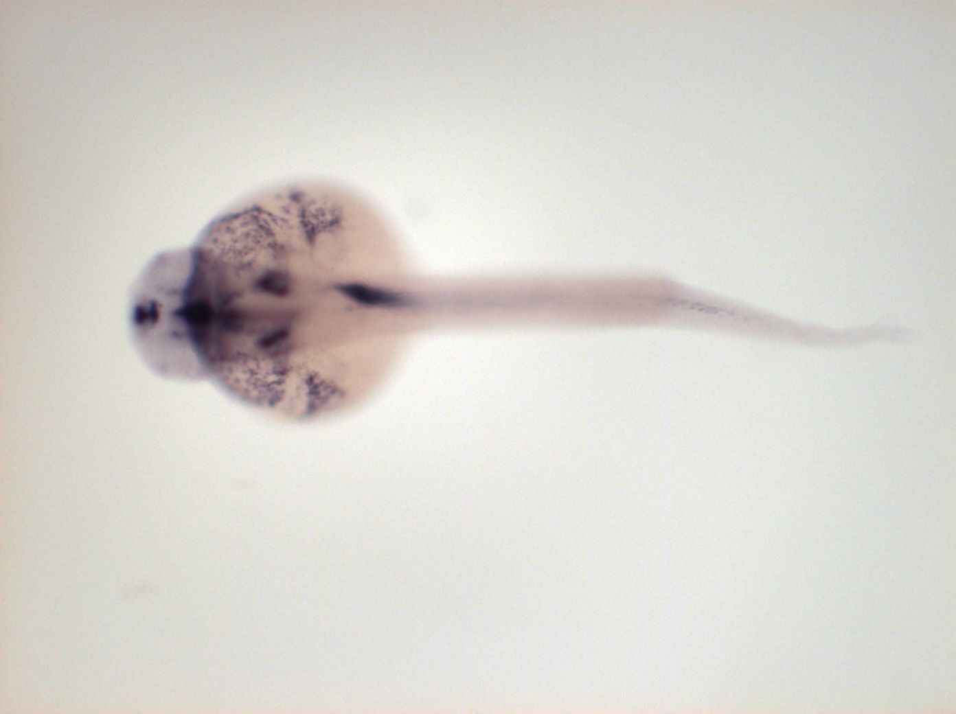 Fig. 5 strong in ventral telencephalon, anterior diencephalon, dorsal diencephalon, posterior retina, ventral diencephalon, tegmentum, dorsal tectum, hindbrain ventricular zone, otic vesicle, intestinal bulb, intestine