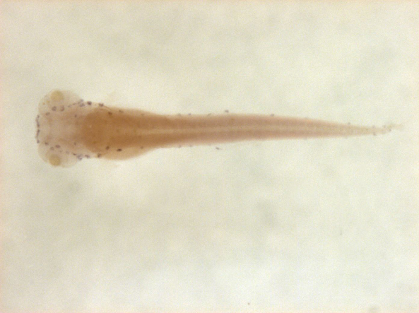 Please note that in 5 day old embryos some structures are not accessible to the probe (such as notochord, most of the trunk and tail). Therefore the description of the expression pattern is only partial.