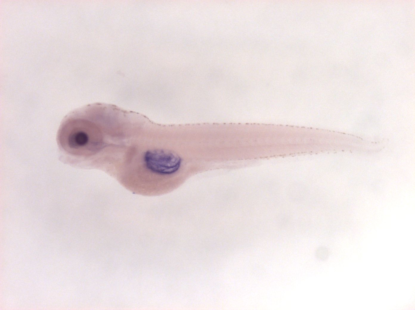 Please note that in 5 day old embryos some structures are not accessible to the probe (such as notochord, most of the trunk and tail). Therefore the description of the expression pattern is only partial.