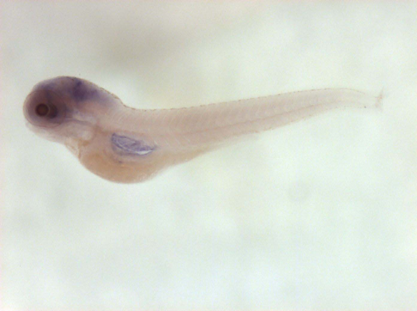 Please note that in 5 day old embryos some structures are not accessible to the probe (such as notochord, most of the trunk and tail). Therefore the description of the expression pattern is only partial.
