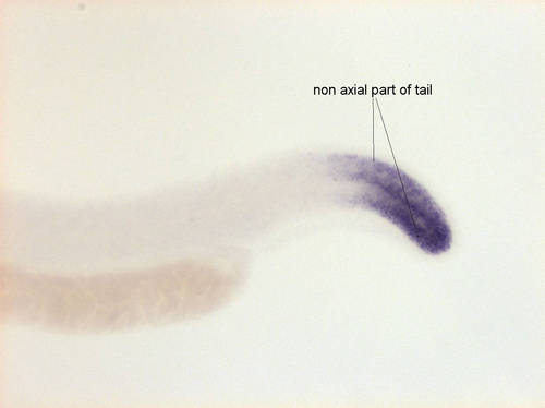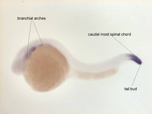 Expressed in branchial arches, tail bud, caudal most spinal chord, posterior tail ventral mesoderm EXPRESSION / LABELING: