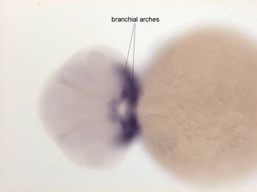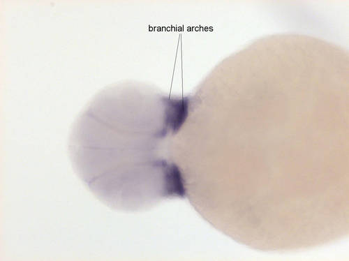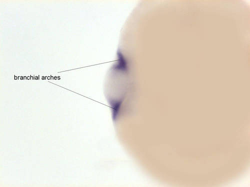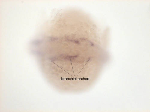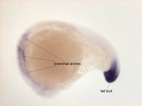 Expressed in branchial arches and in tail bud EXPRESSION / LABELING: