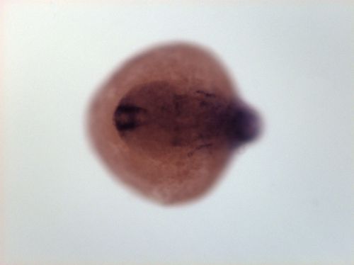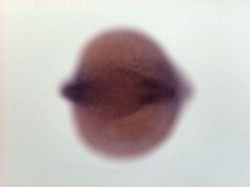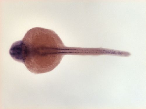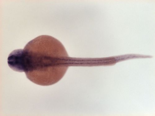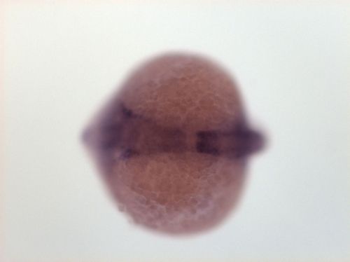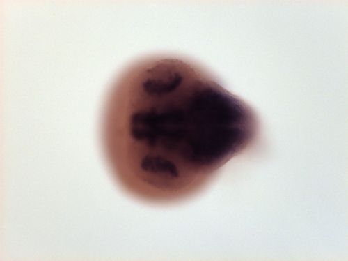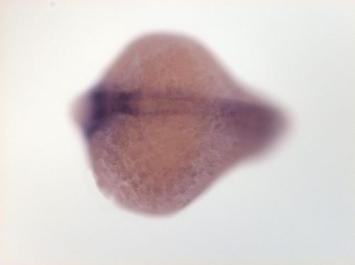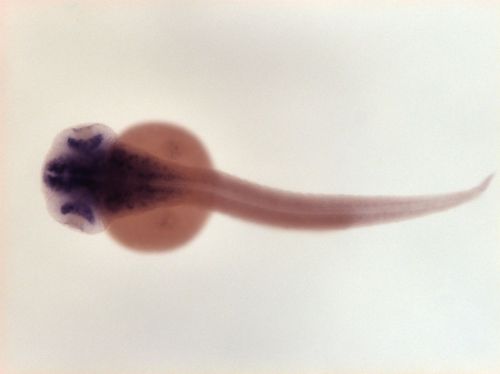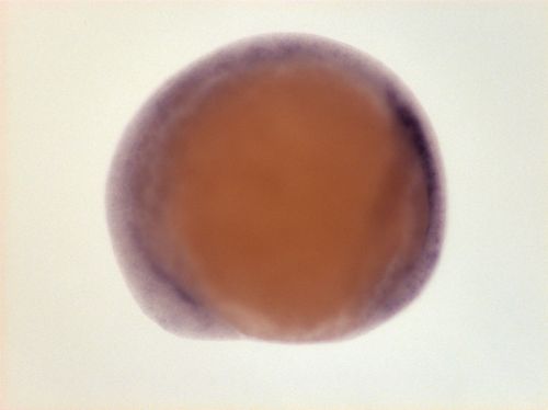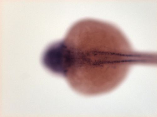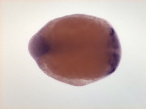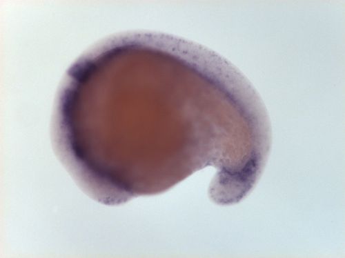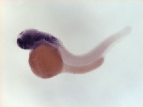 brain ventricular zone, one spot in dorsal telencephalon, dorsal hindbrain EXPRESSION / LABELING: