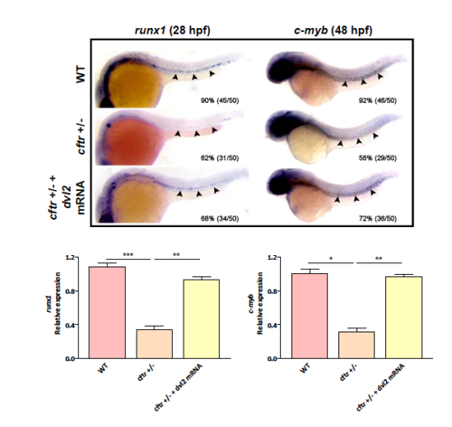 dvl2 mRNA rescues the hematopoietic defect in cftr morphants. EXPRESSION / LABELING: