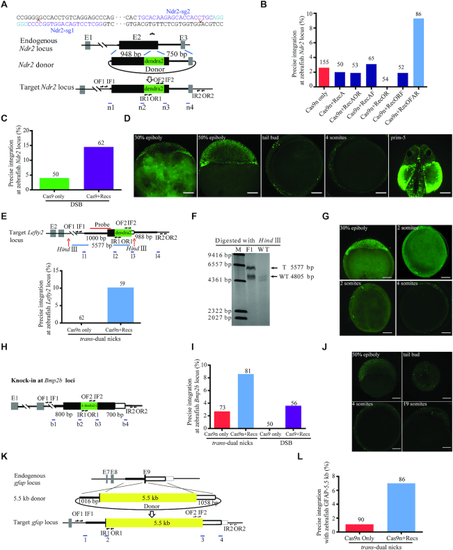 RecOFAR facilitate dual nicks-based efficient gene KI at multiple loci in zebrafish. ( |