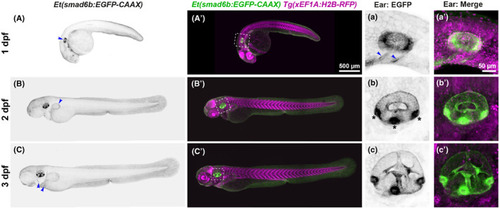 Enhancer trap lines with GFP driven by smad6b and frizzled1 regulatory sequences for the study of epithelial morphogenesis in the developing zebrafish inner ear