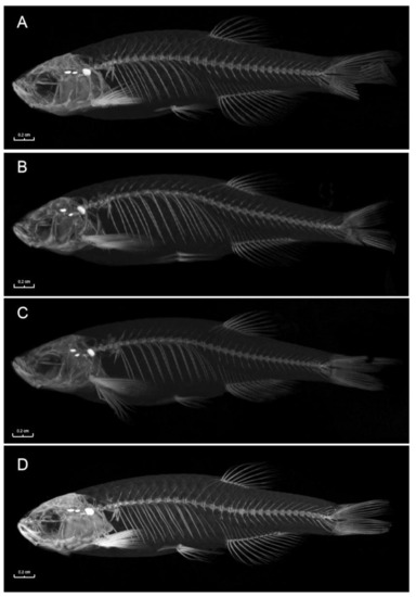 The expression of bone-related genes in miR-196a-1 or miR-196b knockout zebrafish was determined by real-time PCR. WT indicates wild-type zebrafish; K-miR-196a-1 indicates miR-196a-1 gene knockout zebrafish; K-miR-196b indicates miR-196b gene knockout zebrafish; K-miR-196a-1/196b indicates miR-196a-1 and miR-196b gene knockout zebrafish. (A) shows the relative expression level of the bmp8a gene, (B) is the gdf6a gene; (C) is the fgfr3 gene; (D) is the col1a1a gene. Compared with wild-type zebrafish, * p < 0.05; compared with miR-196a-1 gene knockout zebrafish, # p < 0.05; compared with miR-196b gene knockout zebrafish, & p < 0.05, n = 3. |