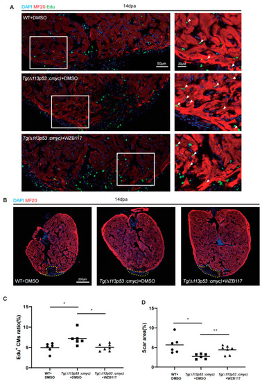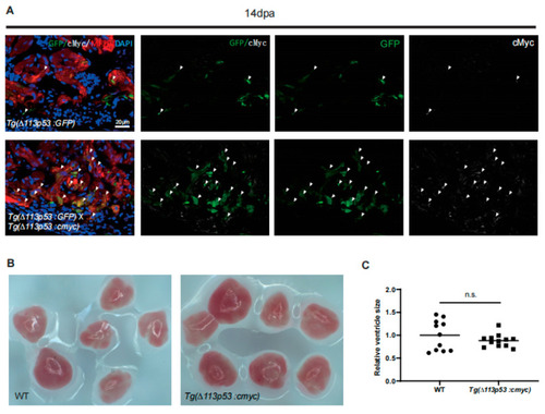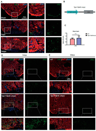 The expression of cMyc is activated around the injury site of zebrafish hearts, which is excessively upregulated in |