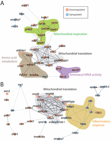 Changes in the muscle proteomes of early and late adults. Figure shows volcano plots of the distribution changes in 4-month-old ( |