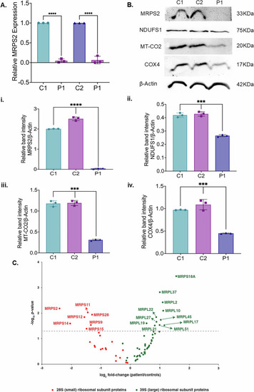 Analysis of MRPS2 expression and OXPHOS proteins in controls and P1 patient derived cells. |