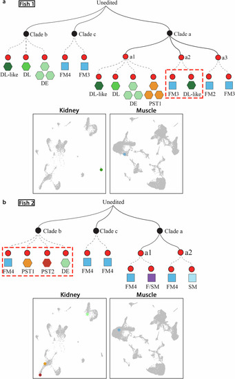 Reconstructed lineage trees reveal linkage between muscle and kidney cells in juvenile zebrafish. |