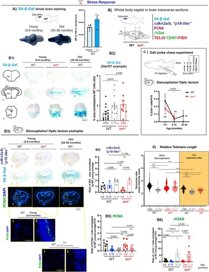 Telomerase (tert) depletion accelerates ageing‐associated stress response in the zebrafish brain. Brain tissue collected from 2–6 months, 9–16 months and 30–36 months WT fish, and 2–6 months and 9–16 months |
